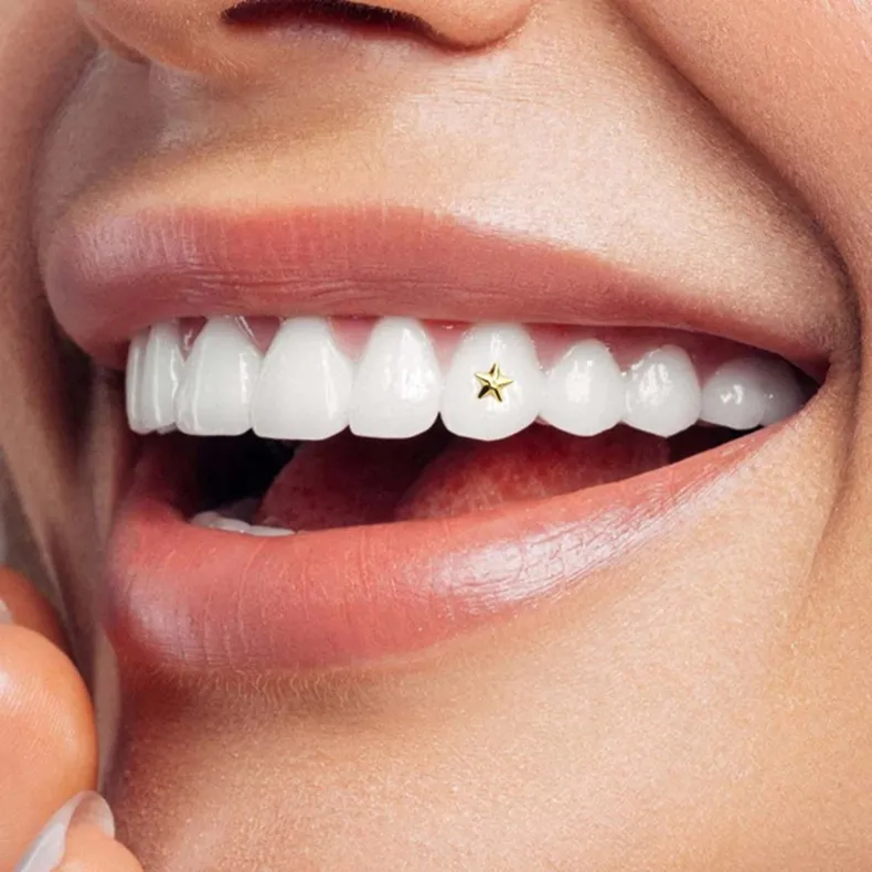 Kullast kaunistuse paigaldus on ohutu ja valutu protseduur, mis ei kahjusta sinu hambaemaili. Kasutan ainult 24-karaadisest kullast kaunistusi, et tagada parim tulemus ja elegantne välimus.